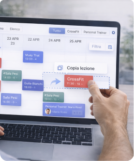 Sposti, modifichi o riprogrammi lezioni direttamente dal calendario, senza passaggi extra. Il palinsesto si adatta in tempo reale alle esigenze del centro.